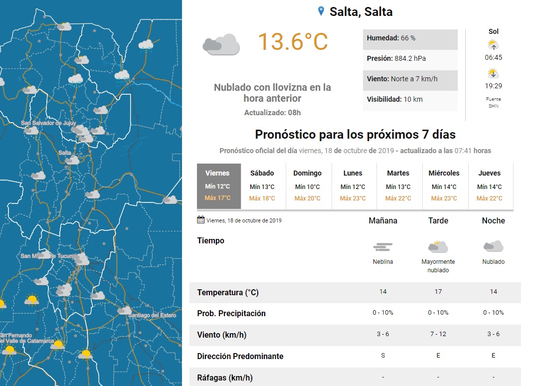 De acuerdo al pronóstico del Servicio Meteorológico Nacional, el domingo comenzarían a mejorar los días y las jornadas se tornarán más primaverales. Se anticipa una máxima de 20°C que ira en ascenso durante la semana.
